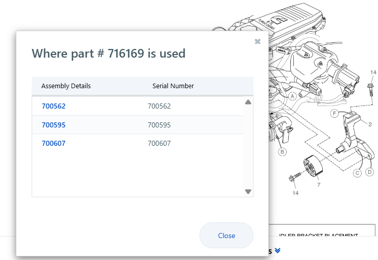 Now let’s just say you want to know if this part is used in other kits? It’s not like anyone has ever… you know like … “borrowed a part from another kit” while we wait for a part to come in. So maybe that part is in another kit on your shelf and you’re wrestling with committing the part manager’s unpardonable sin of “borrowing a part” from another kit. Yeah… Yeah… we all know… this NEVER EVAH happens. So why don’t we pretend otherwise and mention this “use only in case of emergency” feature called “Where is part # xxxx is used?”
